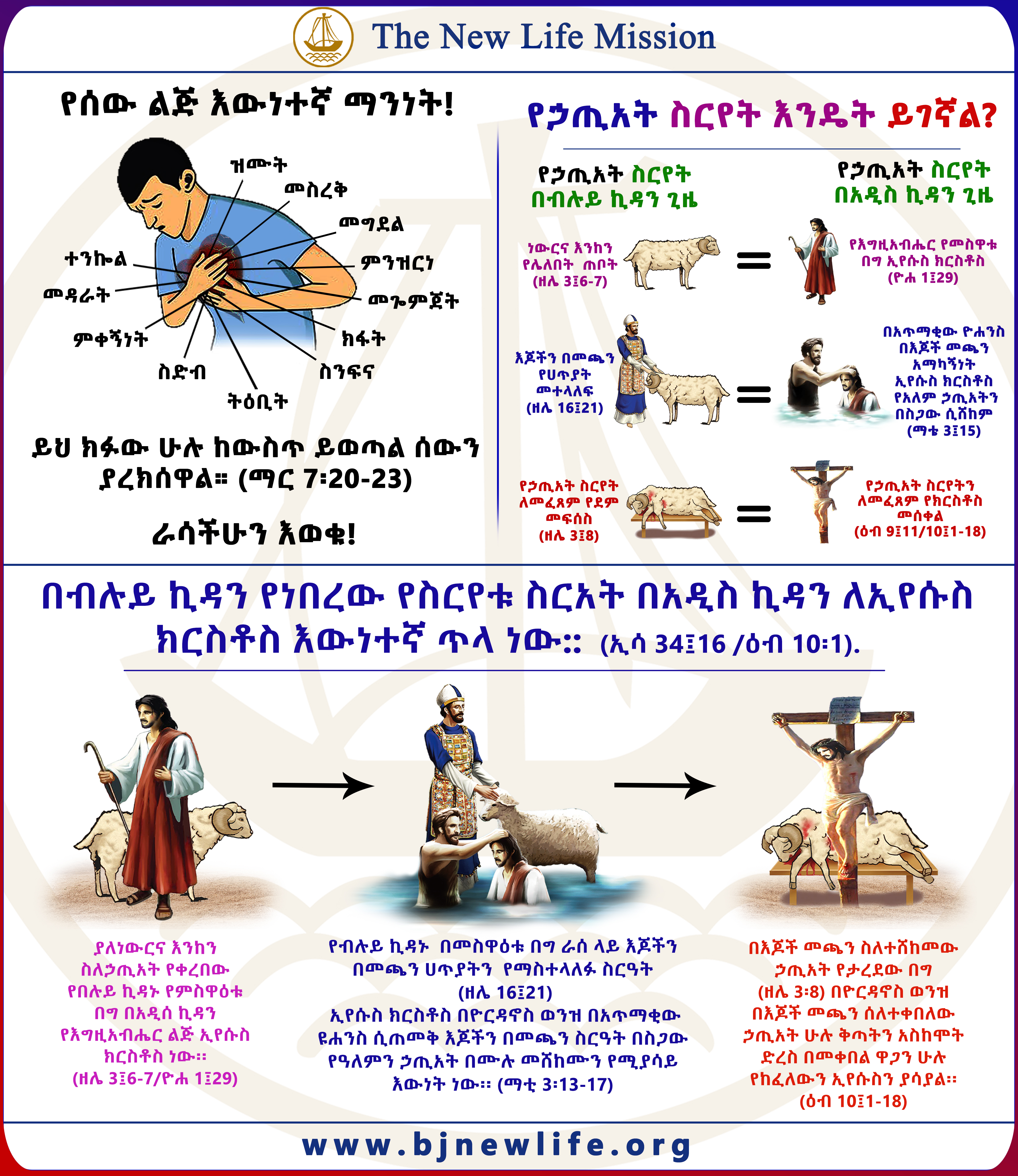 አያሌ ክርስቲያኖች ክርስቶስ በመስቀል ላይ እንደሞተላቸው ቢያምኑም፣ ግን ኃጢአተኞች ናቸው። ኢየሱስ የአዳምን ወይም የውርስ ኃጢአት ብቻ እንዳስወገደ ስለሚያምኑ፣ በየዕለቱ ለሚሰሩት ኃጢአት ስርየትን ለማግኘት በእ/ር ፊት ያለቅሳሉ። በክርስቶስ ቢያምኑም ኃጢአተኞች እንደሆኑ ያስባሉ። አሁን ግን ከዚህ የዲያብሎስ ሽንገላ ነጻ የሚያወጡበትና ከኃጢአት ለአንዴና ለመጨረሻ ጊዜ የሚድኑበት ዘመን መጥቷል። Bereket Make Mara, Ethiopia